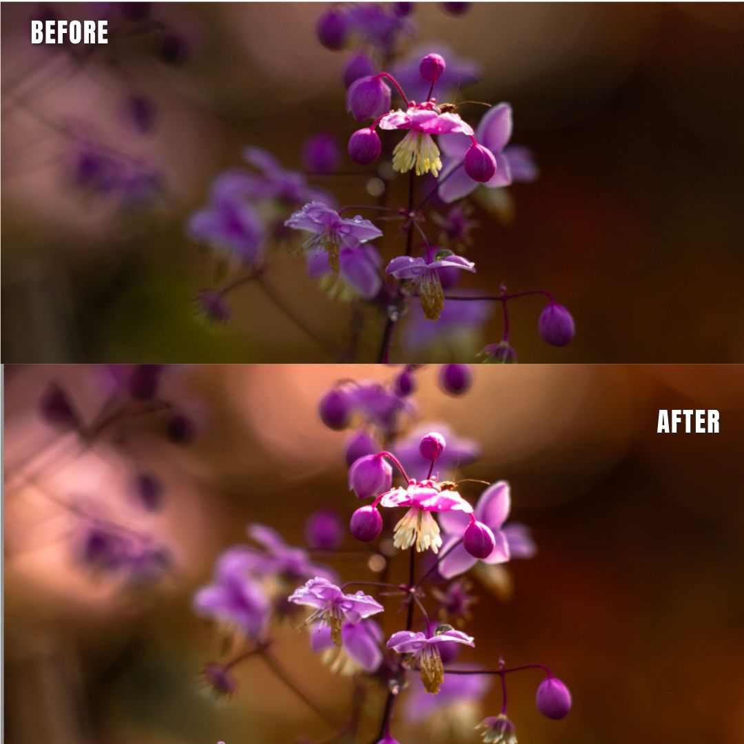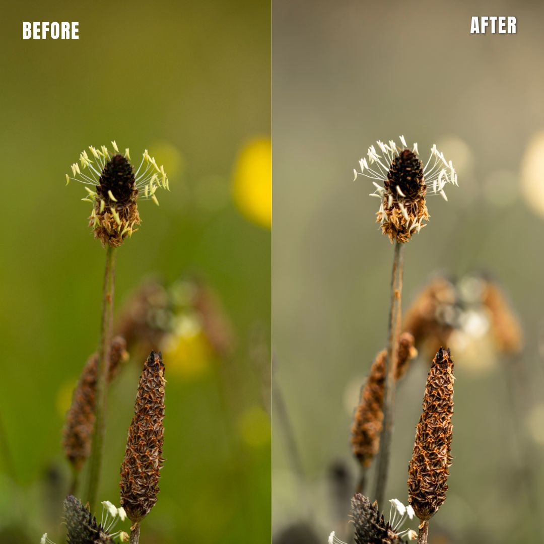 Macro Photo Presets pack of 10 presets for Adobe Lightroom® suite in in muted greens and golde tones, that is a great starting point for your macro photos. Works well for flower, straw, greeneries and more.