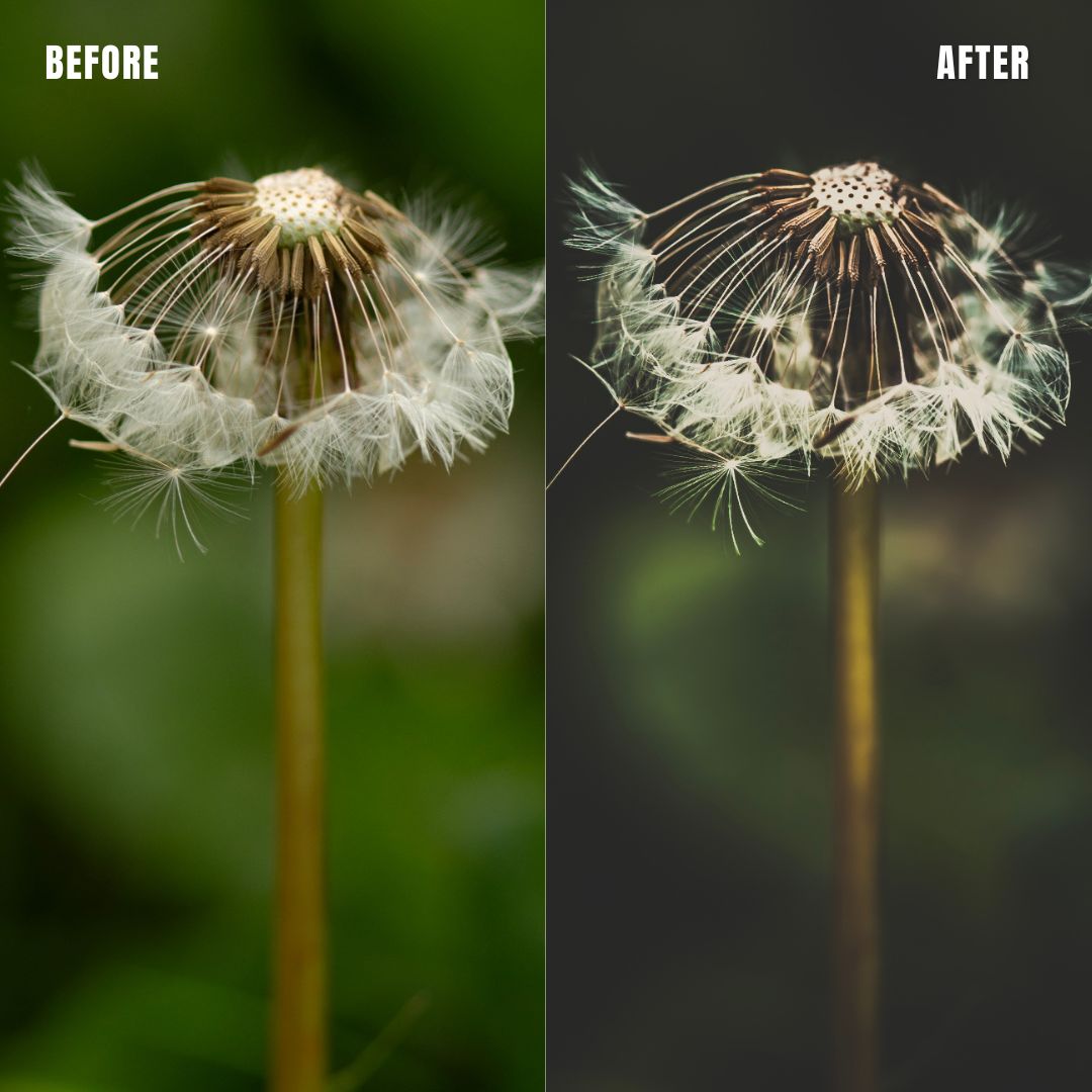 Macro Photo Presets pack of 12 presets for Adobe Lightroom® suite in a really dark and moody retro style focusing on the greens, that creates beautiful moody and dark photos with greens highlighted. Suitable for all types of macro really, but especially greens. Creates a new and artistic look for your macro photos.
