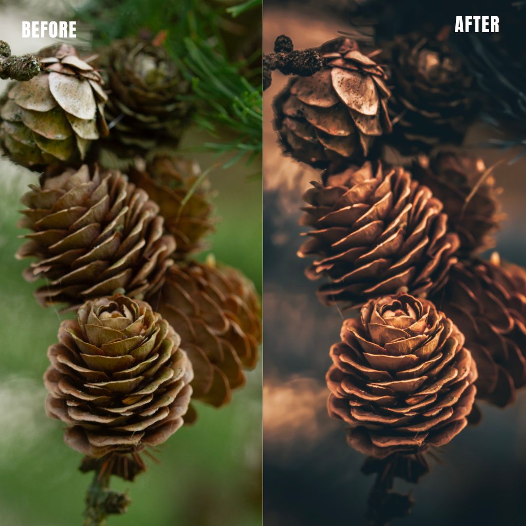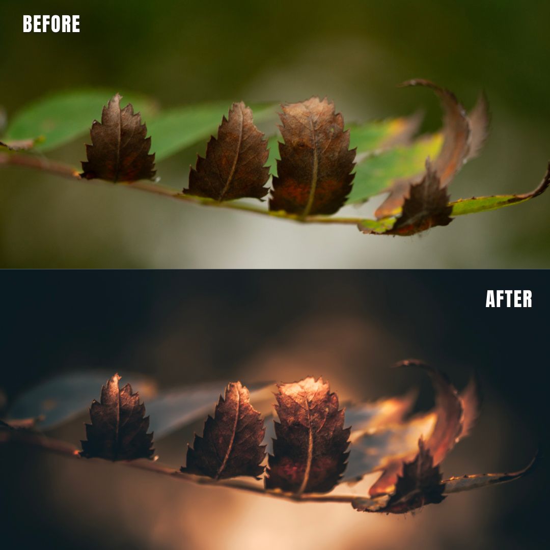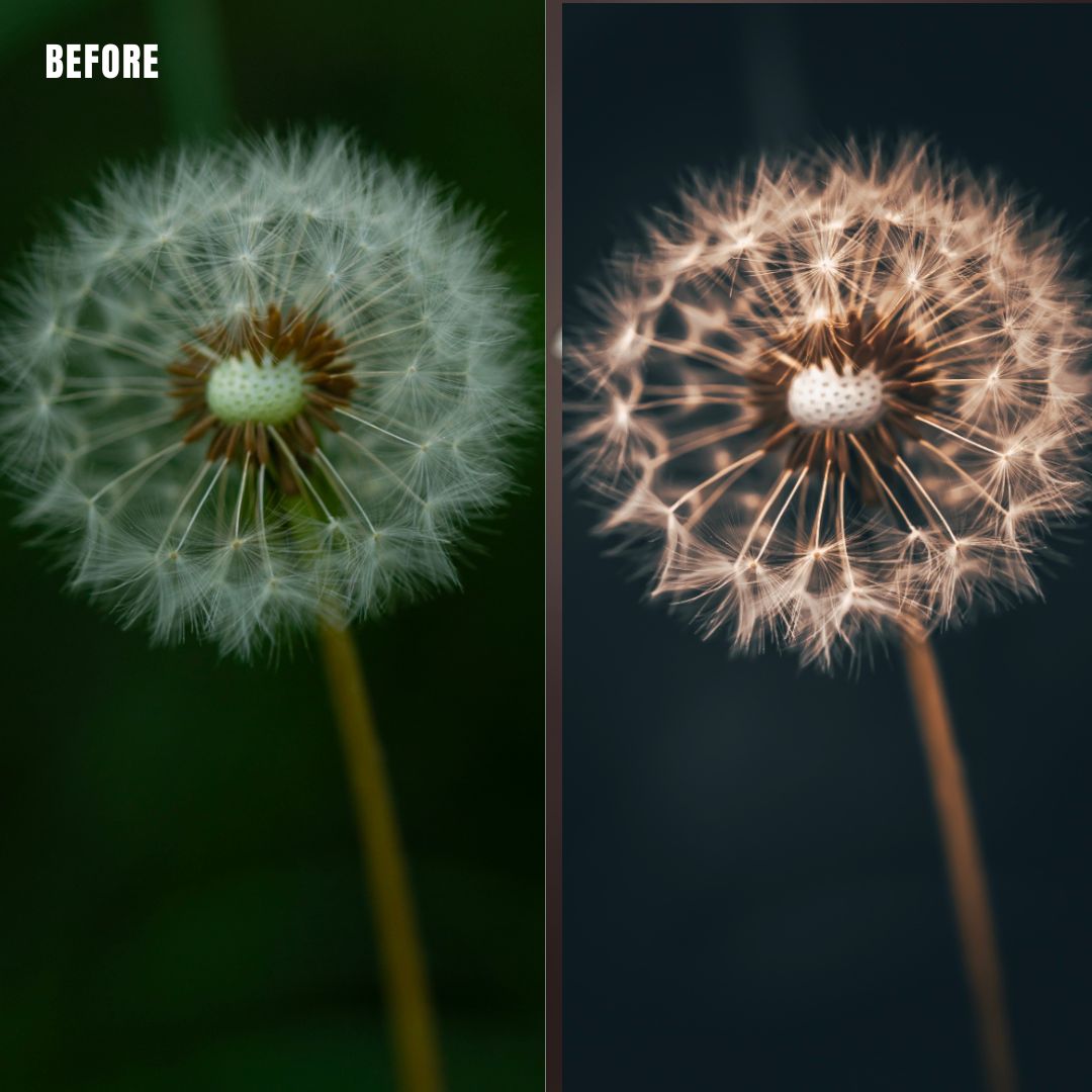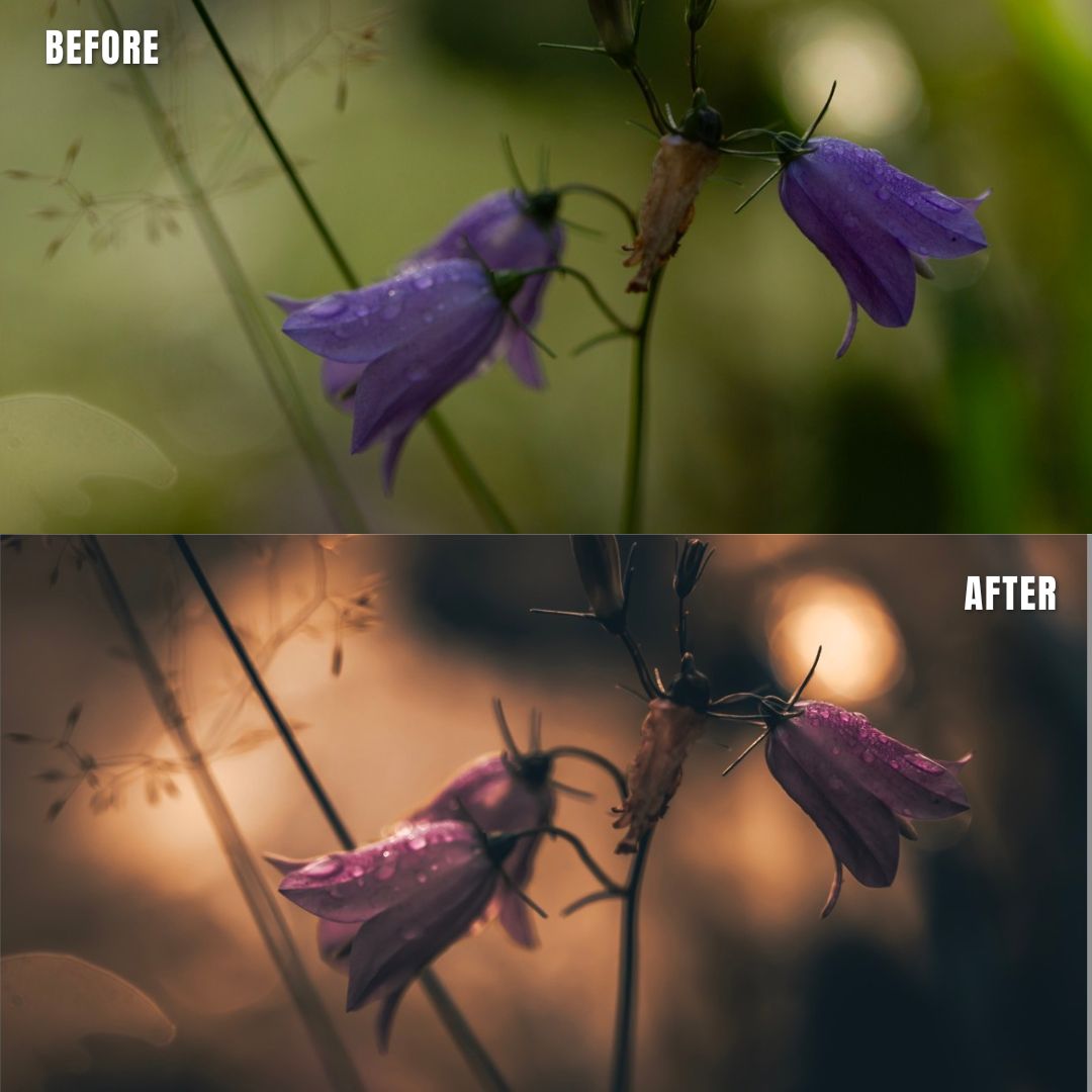 Macro Photo Presets pack of 12 presets for Adobe Lightroom® suite in golden warm brown tones and that creates beautiful moody golden browns in photos. Suitable for all types of macro really. Creates a new and artistic look for all your macro photos.