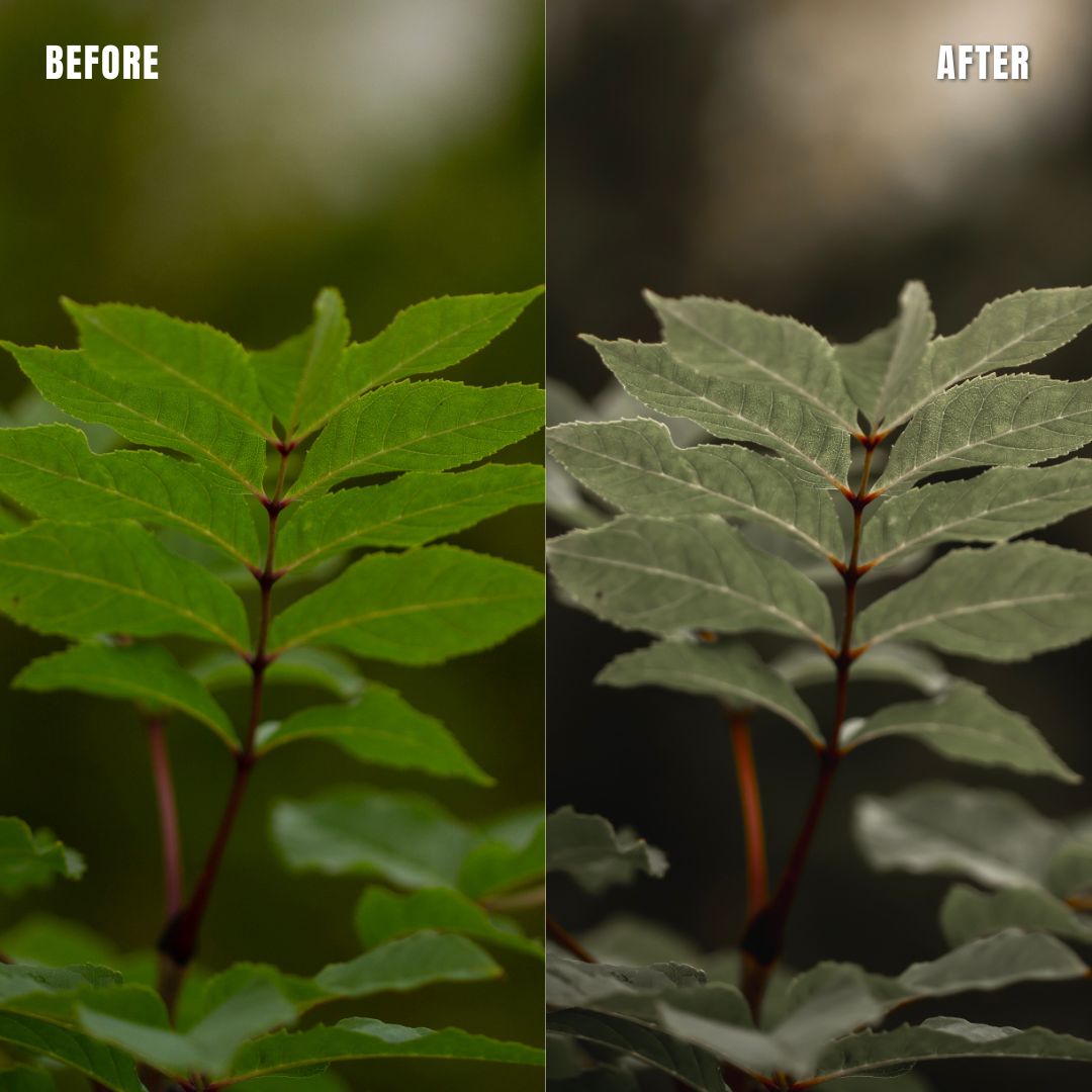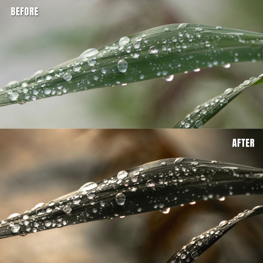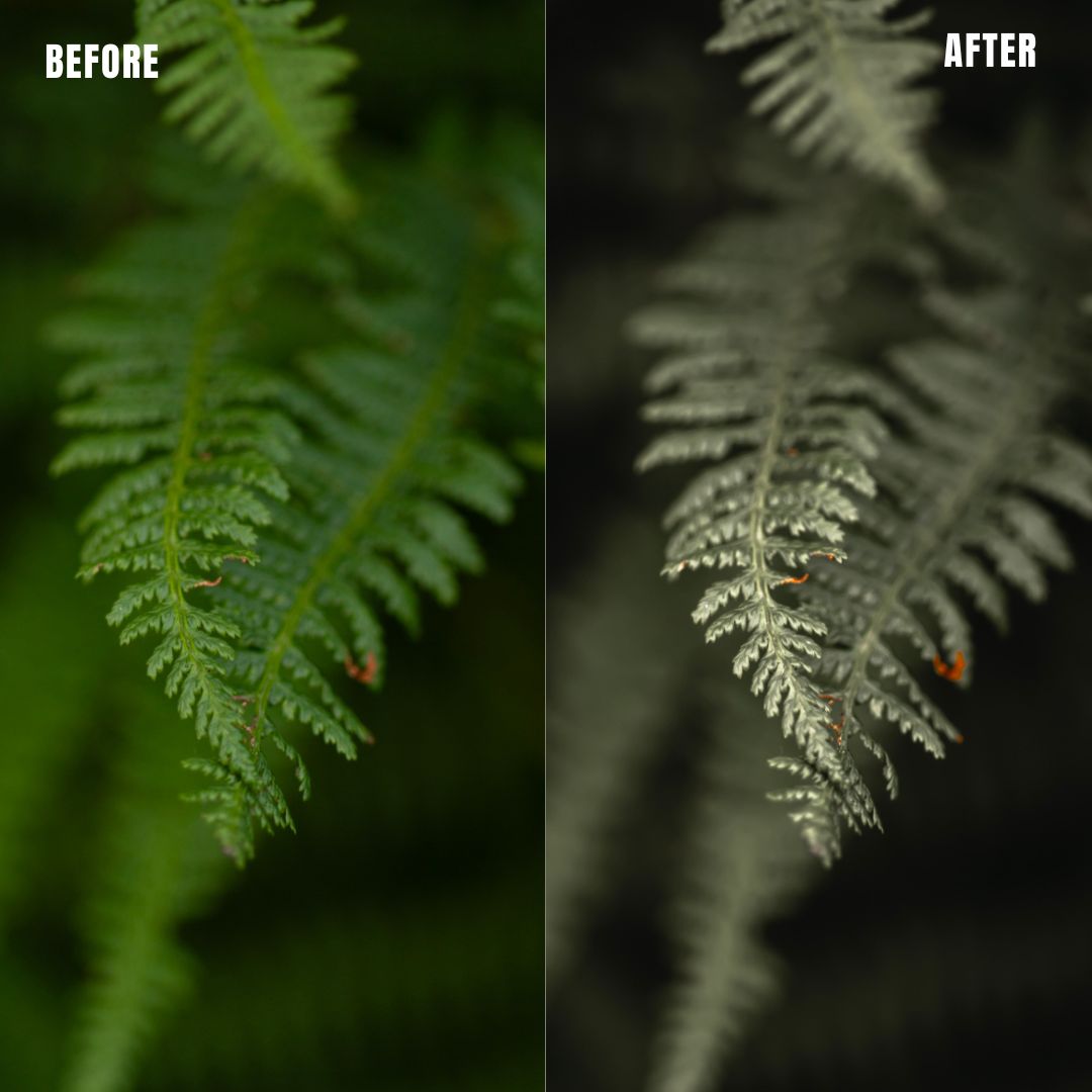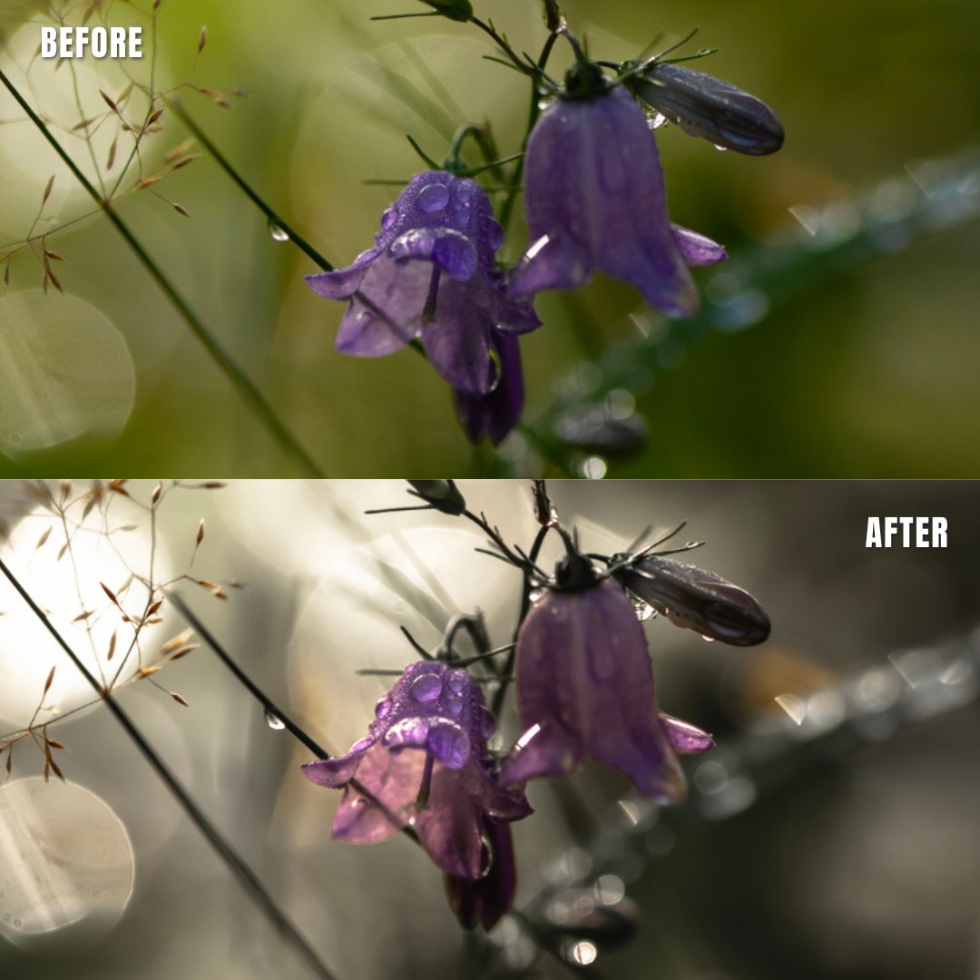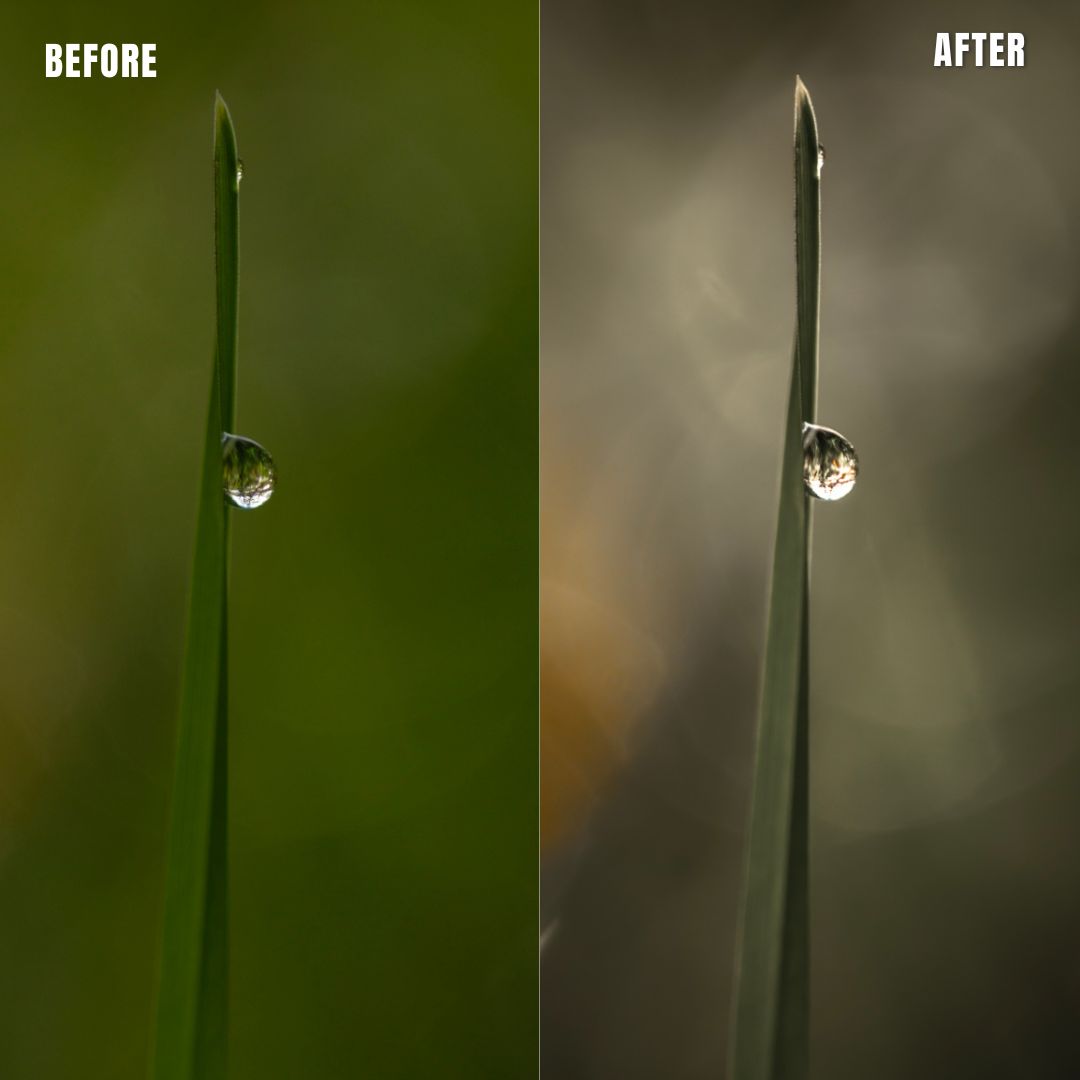 Macro Photo Presets pack of 11 presets for Adobe Lightroom® suite in muted clear greens with warm support tones. Suitable for greeneries to get a muted, moody look. Creates a new and artistic look for all your macro photos.