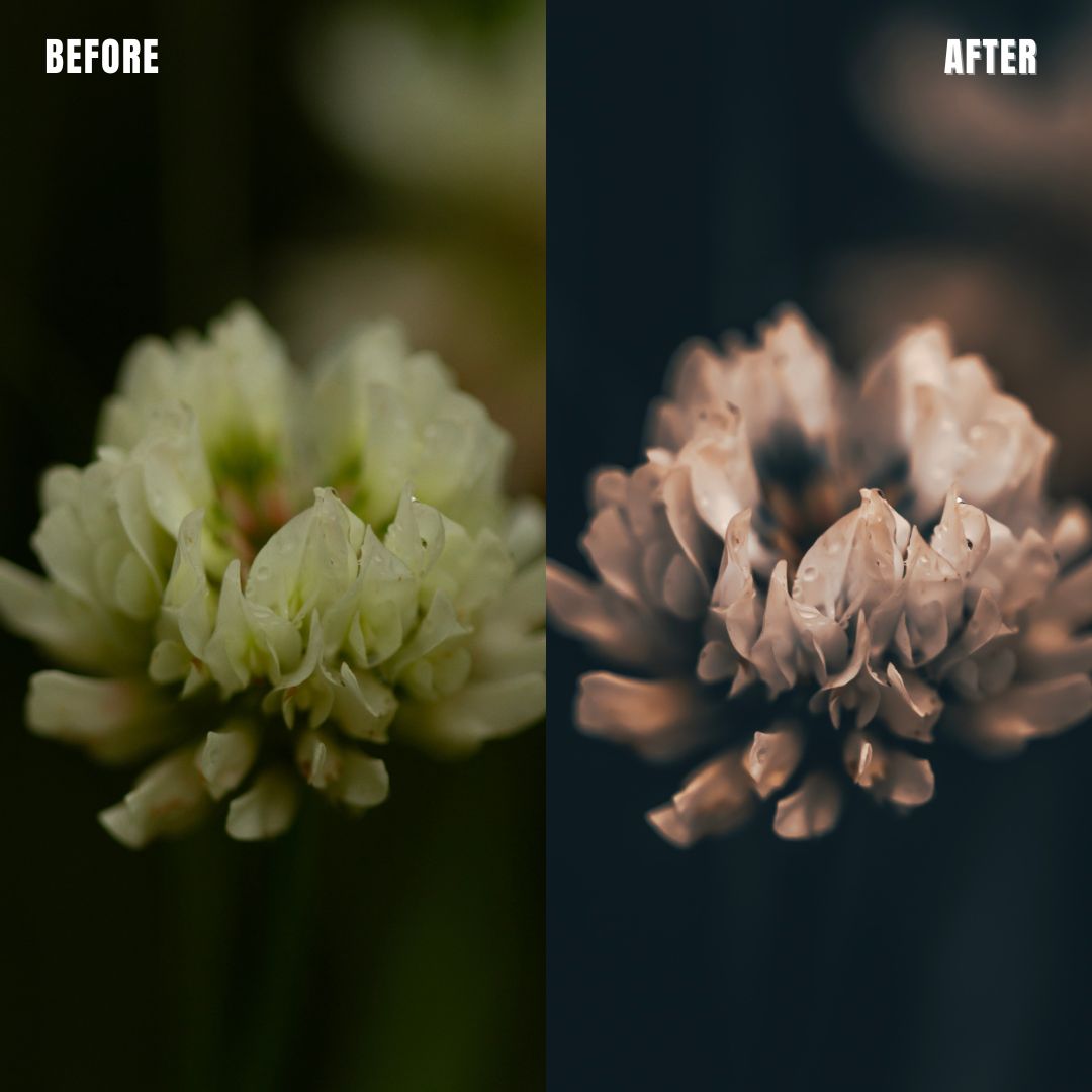 Macro Photo Presets pack of 11 presets for Adobe Lightroom® suite in in golden brown colours, that creates beautiful moody and dark photos. Suitable for all types of macro really. Creates a new and artistic look for all your macro photos.